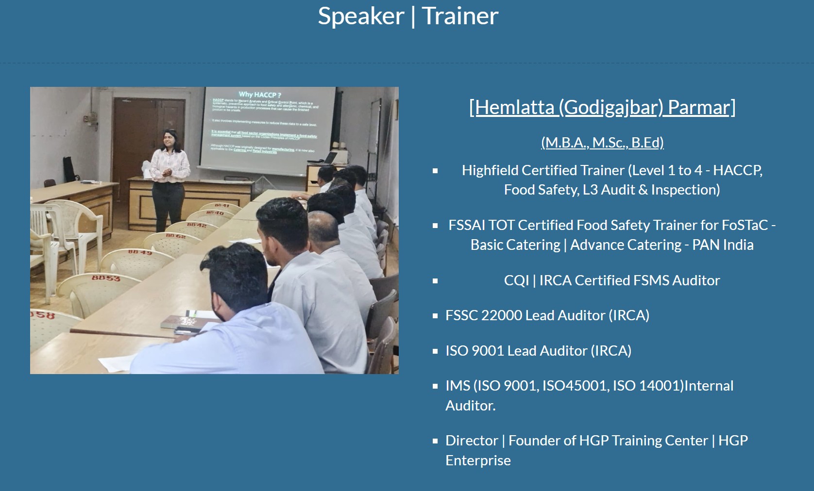 Admission open: HACCP Level 4 training program scheduled at HGP Training Center in Classroom OR Online or Self Study