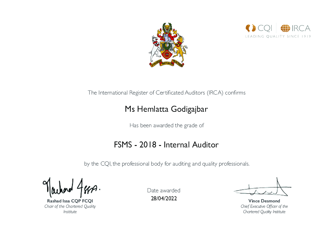 FSSC 22000 Lead Auditor (IRCA Certificate)