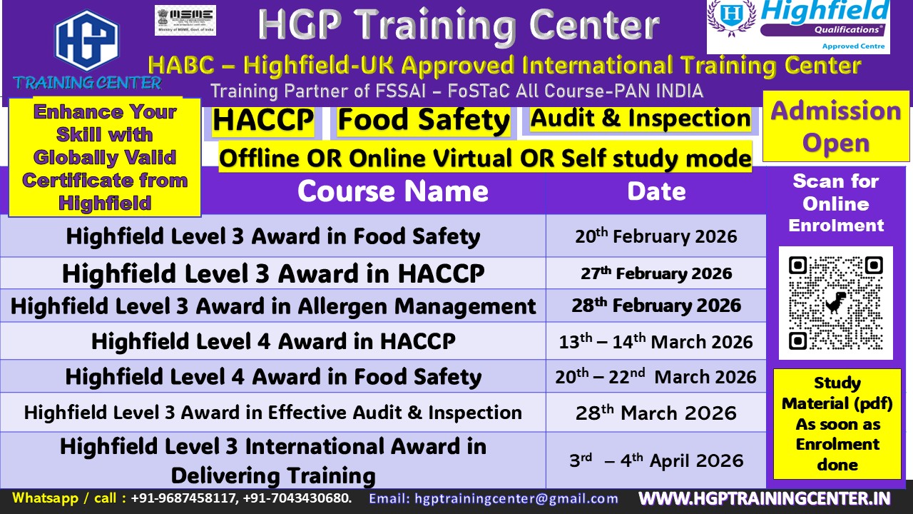 HGP training center to provide FSSAI mandate food safety supervisor [...]